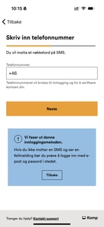 Vi er i ferd med å fjerne muligheten for å logge inn med SMS. I forbindelse med neste appversjon vil det ikke lenger være mulig å bruke SMS-innlogging. Derfor må du oppdatere profilen din og opprette en konto med e-postadresse og passord. Dette tar bare et par minutter.
