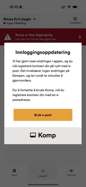 Neste gang du logger inn i Komp-appen, skal du bruke e-postadressen og passordet ditt.